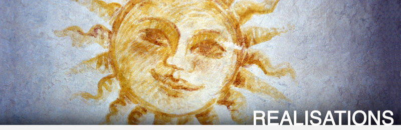 Les fresques, les enduits et badigeons de chaux complètent et s'accordent merveilleusement bien à l'architecture bio-climatique, aux constructions nouvelles respectueuses de l'environnement et au bâti ancien.